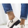 Beżowe lakierowane półbuty Valks to model, który doda charakteru Twoim stylizacjom! Ich wysoka traktorowa podeszwa jest absolutnym Must Have tego sezonu. Wykonane z wysokiej jakości materiałów, półbuty zapewniają wysoki komfort dzięki wkładce z naturalnej skóry. Klapa prezentuje się bardzo stylowo, a paski są mocowane na elastycznym materiale. Dodatkowym udogodnieniem jest możliwość odpięcia klamerki przy zakładaniu klapy lub wygodne wsunięcie stopy. Numeracja jest standardowa, więc możesz wybrać swój zwykły rozmiar. Półbuty nie posiadają ocieplenia, a podeszwa wykonana jest z wytrzymałej gumy w kolorze czarnym. Idealne na lato!