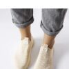 Podeszwa butów wykonana jest z wytrzymałej gumy w beżowym kolorze, co dodaje im elegancji. Zapięcie wsuwane ułatwia szybkie zakładanie i zdejmowanie obuwia.
