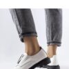 Białe lakierowane półbuty Legget to idealne obuwie na sezon wiosenno-letni. Mają modną, traktorową podeszwę z kwadratowym, płaskim obcasem, co dodaje im charakteru. Niska cholewka sięga przed kostkę, a minimalistyczne przeszycia dodają im nowoczesności. Wykonane są z ekoskóry, co sprawia, że są przyjazne dla zwierząt, a wkładka ze skóry naturalnej zapewnia komfort noszenia. Półbuty mają okrągły nosek, co dodaje im kobiecego uroku. Doskonale będą pasować do bluzki z dekoracyjnymi łańcuszkami i skórzanej spódnicy. Numeracja jest standardowa, więc warto kierować się swoim rozmiarem przy zakupie. Podeszwa wykonana jest z gumy w kolorze czarnym, a zapięcie na sznurowane. To obuwie z kolekcji na sezon letni, idealne na cieplejsze dni. Ocieplenie półbutów nie występuje, co sprawia, że są doskonałe na letnie spacery czy spotkania na świeżym powietrzu.