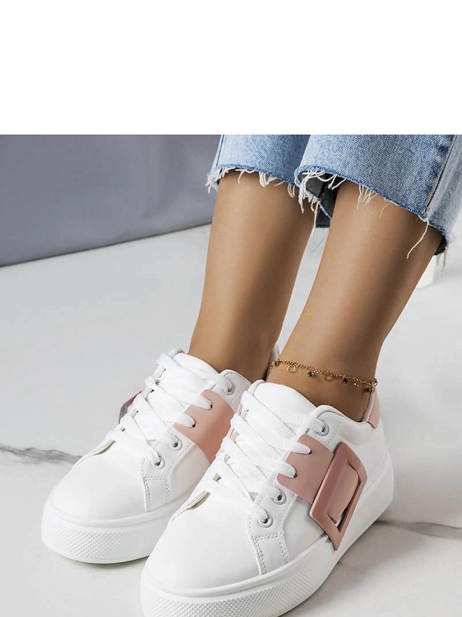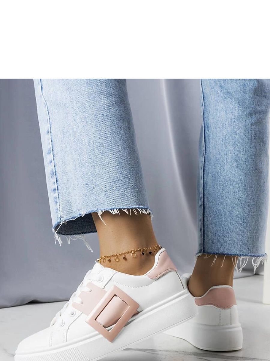 Białe sneakersy zdobione różową klamerką Toni – Solea