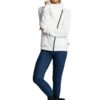 Na co dzień w domu, na spacer, czy jogging, zawsze gdy potrzebujesz założyć coś ciepłego i wygodnego sportowa bluza jest najlepszym wyborem. Nasza propozycja ma wysoki kołnierz z ciekawym drapowaniem oraz kontrastowy, ukośnie wszyty zamek. Po bokach kieszenie wsuwane.