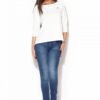 Bluzka marki Katrus to propozycja dla pań ceniących wygodę i elegancję. Bluzka stworzona została z wysokiej jakości materiałów, które umożliwiają swobodną wymianę powietrza. Model ten posiada dłuższy tył, co optycznie pozwala wydłużyć sylwetkę oraz ją wyszczuplić. Krótszy przód może eksponować oryginalny pasek. Bluzka nadaje się do noszenia podczas chłodniejszych, letnich wieczorów.