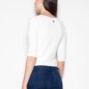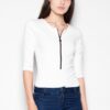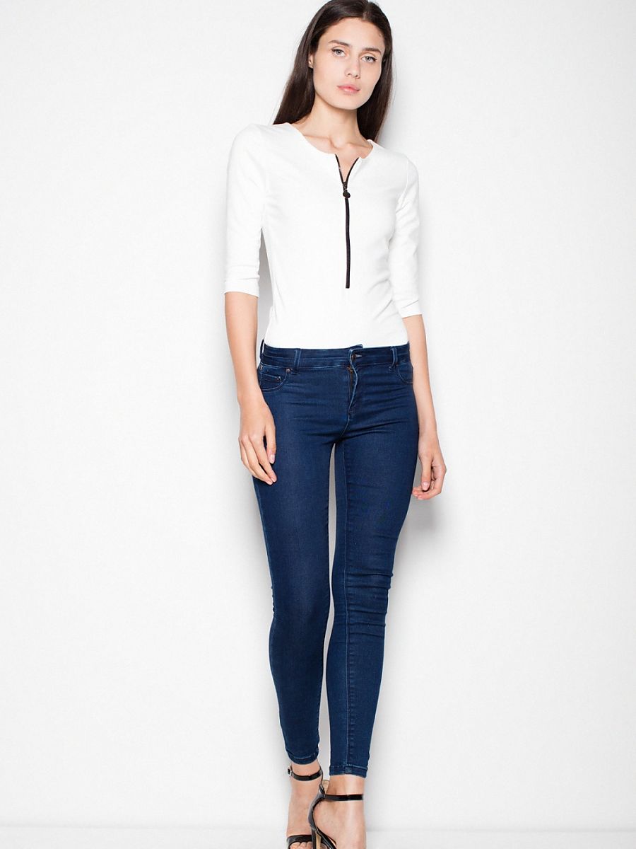 Dopasowane, kobiece, body, z 3/4 rękawem. Zapinane na ozdobny suwak. Idealne do dopasowanych jeansów.