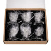 • SPECYFIKACJA – materiał: szkło, pozostałe: piórka + linka nylonowa; kolor: biały, przeźroczysty; ilość w opakowaniu: 6; wymiar: 5 x 4,3 x 2,8 cm; waga: 62 g; waga w opakowaniu: 96 g.