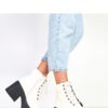 Nowoczesne i wyraziste masywne botki damskie wykonane z trwałej ekologicznej skóry. Model posiada charakterystyczny kwadratowy nosek, 12-centymetrową cholewkę oraz solidny 9-centymetrowy obcas oraz 5-centymetrową platformę, co nadaje im mocnego, modowego charakteru i zapewnia wygodę chodzenia. Buty mają klasyczne sznurowanie uzupełnione o praktyczne zapięcie na zamek, które ułatwia zakładanie. Wnętrze wykończone tkaniną bez ocieplenia, dzięki czemu sprawdzą się doskonale w sezonie przejściowym. To botki w stylu chunky, które perfekcyjnie dopełnią miejskie stylizacje, idealne do jeansów, ramoneski czy oversizeowego płaszcza.