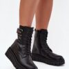 Botki damskie wykonane z eko skóry. Osadzone na platformie. Model ten zapinany jest na suwak z boku cholewki oraz dodatkowo sznurowany. Ozdobny detal z boku. Środek ocieplany kocem obuwniczym. Koniecznie powinnaś je mieć w swojej jesienno-zimowej garderobie.