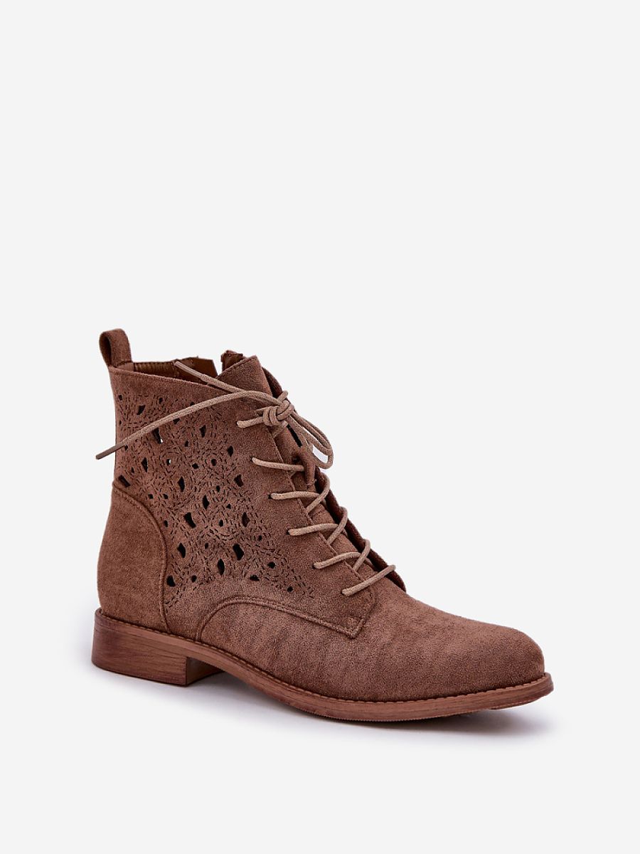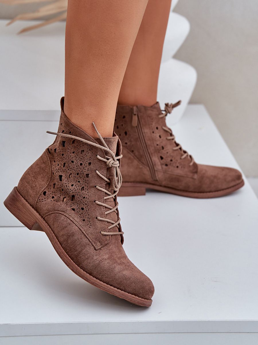 Botki damskie na płaskim obcasie od marki S.Barski to elegancka propozycja, która łączy wygodę z nowoczesnym stylem. Wykonane z wysokiej jakości eko zamszu. Sznurowane oraz zapinane na zamek, co pozwala na łatwe zakładanie i idealne dopasowanie do stopy. Ażurowy wzorek na cholewce nadaje subtelnego charakteru, wprowadzając świeży i kobiecy akcent. Dzięki płaskiemu obcasowi te botki są wygodne do noszenia przez cały dzień, doskonale sprawdzając się w codziennych stylizacjach. Idealne na wiosnę lub jesień, stanowią świetne uzupełnienie casualowych oraz eleganckich outfitów, łącząc funkcjonalność z modnym wyglądem.