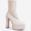 Botki damskie wykonane z ekologicznej skóry. Model ten wyróżnia masywna platforma i wysoki obcas typu słupek. Zapinane na zamek. Środek ocieplany wyłącznie na wysokości stopy. Noski w migdał. Stylowe i kobiece, świetne na różne okazje!