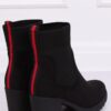 Botki damskie ? sztyblety na szerokim obcasie o wysokości 8 cm. Świetnym i wyjątkowo modnym rozwiązaniem jest elastyczna część cholewki w dotyku przypominająca sweterek, która zapewnia idealne dopasowanie. Atrakcyjnym dodatkiem jest również lampas z tyłu podkreślający ich charakter (w kolorze bordowym nie ma). Czego można chcieć więcej? : ) Wnętrze wyścielone jest delikatnym futerkiem. Materiał zewnętrzny ? zamsz ekologiczny + tkanina.