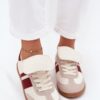 Damskie sneakersy wykonane z eko skóry. Charakteryzują się unikalnym, wywiniętym językiem, który nadaje im nowoczesny wygląd. Oferują komfort dzięki miękkiej wkładce z piankowego tworzywa, która zapewnia doskonałą amortyzację i wygodę przez cały dzień. Sznurowane, co pozwala na idealne dopasowanie do stopy. Te sneakersy to świetny wybór na co dzień.