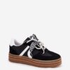 Stylowe sneakersy z eko zamszu to doskonała opcja dla osób ceniących komfort i modny wygląd. Dzięki platformie, obuwie nie tylko unosi sylwetkę, ale także wspaniale podkreśla współczesny styl. Sznurowadła są ozdobione uroczymi przypinkami, co dodaje dziewczęcego wdzięku i unikalności. Te sneakersy świetnie pasują do codziennych outfitów!