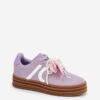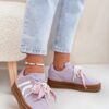 Stylowe sneakersy z eko zamszu to doskonała opcja dla osób ceniących komfort i modny wygląd. Dzięki platformie, obuwie nie tylko unosi sylwetkę, ale także wspaniale podkreśla współczesny styl. Sznurowadła są ozdobione uroczymi przypinkami, co dodaje dziewczęcego wdzięku i unikalności. Te sneakersy świetnie pasują do codziennych outfitów!