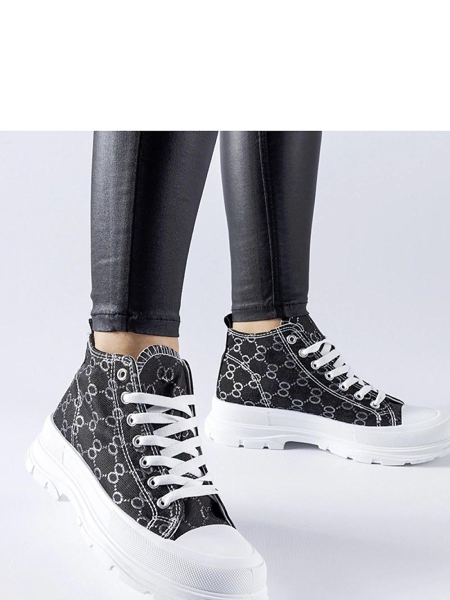 Czarne trampki zdobione monogramem Terenzio to doskonała propozycja dla osób poszukujących stylowych butów w przystępnej cenie. Trampki wykonane są z tkaniny, co sprawia, że są lekkie i wygodne. Mają wysoką cholewkę, co dodaje im modnego charakteru.