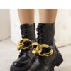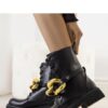 Czarne traperki Galar z łańcuchem to absolutny must-have tego sezonu! Model ten łączy w sobie wszystko, co najmodniejsze. Cholewka wykonana jest z wysokiej jakości skóry ekologicznej, co gwarantuje nasz komfort. Złote detale dodają elegancji i podkreślają kolor butów. Numeracja jest standardowa, więc warto kierować się swoim rozmiarem podczas zakupu. Buty nie posiadają ocieplenia, a podeszwa wykonana jest z gumy w kolorze czarnym. Idealne na sezon jesienno-zimowy.