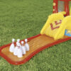 • WIELE ELEMENTÓW – w zestawie znajduje się wiele elementów, w tym m.in. piłki i kosze do gry, pryskająca wodą piłka, basen, zdejmowana zjeżdżalnia, kręgle, dmuchane kółka oraz dmuchana poduszka, które stanowią urozmaicenie i frajdę, pozwalając bawić się Twojemu dziecku bez końca.