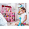 - SPECYFIKACJA – kolor: wielokolorowy; montaż: DIY; materiał: tektura, pozostałe: PC) + lalka (dominujący materiał: PVC, pozostałe: nylon, włókno) + akcesoria (PP); ilość elementów w zestawie: 22 + lalka + domek; ilość poziomów: 3; ilość pokoi: 8 + balkon; wysokość między piętrami: 17cm; wymiary: 17 x 60 x 65 cm; waga: 1,15 kg; waga w opakowaniu: 1,5 kg.