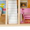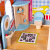 - SPECYFIKACJA – kolor: wielokolorowy; materiał: drewno; ilość elementów w zestawie: 18 + domek; wymiary (dł/szer/wys): 29/59/90cm; ilość poziomów: 3; ilość pokoi: 5 + balkon i ogród z basenem; waga: 10,15kg; waga w opakowaniu: 11,35kg