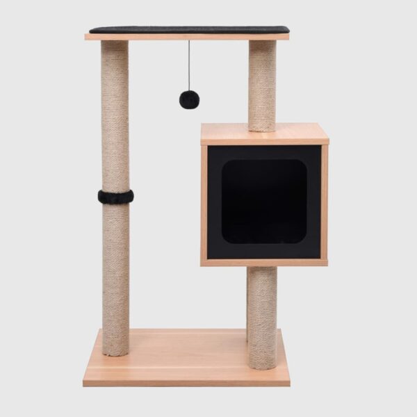 • Przytulny domek: Na niższym poziomie, idealny na kocie drzemki. Twój kot poczuje się jak w małym, przytulnym domku na drzewie.