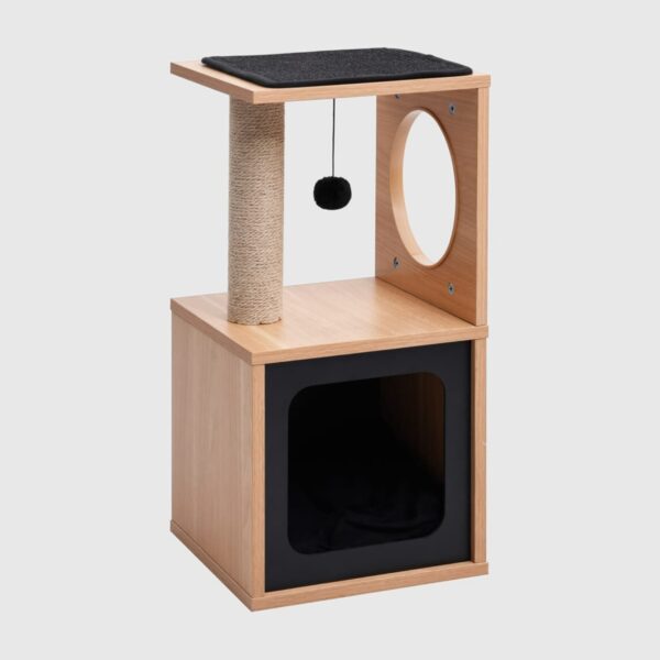 Drapak został wykonany z drewna, MDF, forniru, sizalu, juty i sztucznego futra, co gwarantuje trwałość i stabilność – nawet podczas najbardziej szalonych kocich harców. Solidna podstawa zapewnia bezpieczeństwo, więc możesz spać spokojnie, wiedząc, że Twój kot ma bezpieczne miejsce do zabawy.