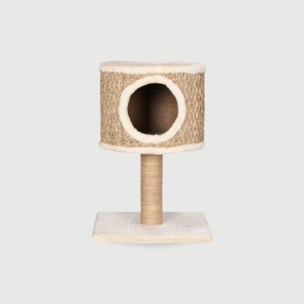 - Materiał: Płyta wiórowa, plusz, trawa morska – bo Twój kot zasługuje na to, co najlepsze.