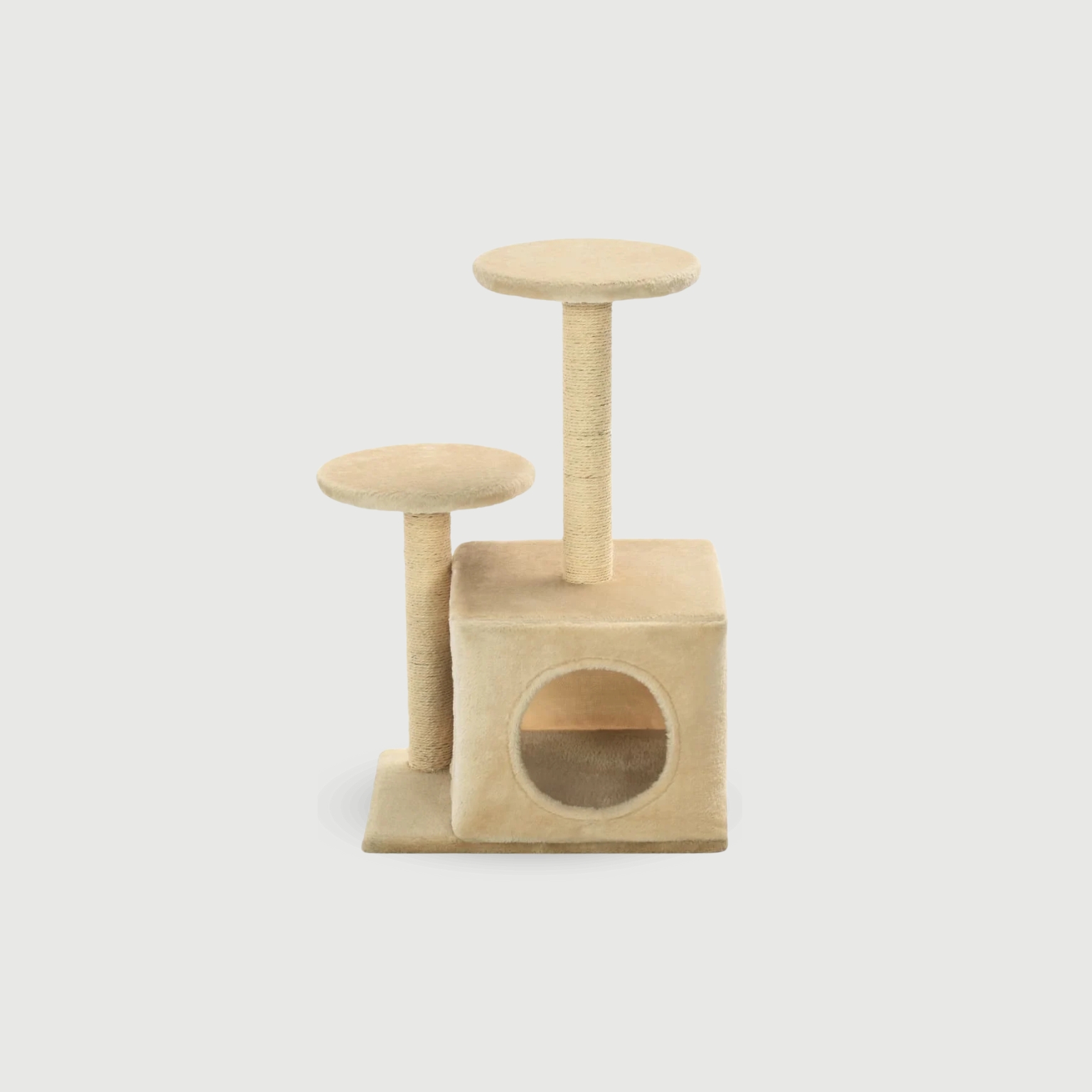 Drapak dla kota ze sizalowymi słupkami i domkiem, 60 cm, beżowy
