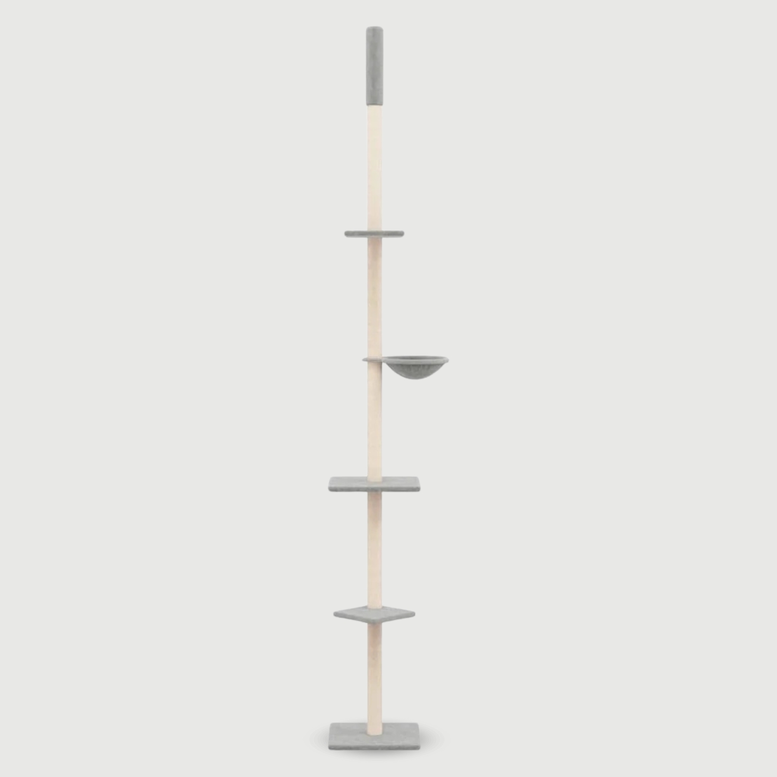 Praktyczna konstrukcja: dzięki regulowanemu słupkowi tę wieżę dla kota można przymocować do sufitu, a jej wysokość można ustawić w zakresie od 263,5 do 289,5 cm.