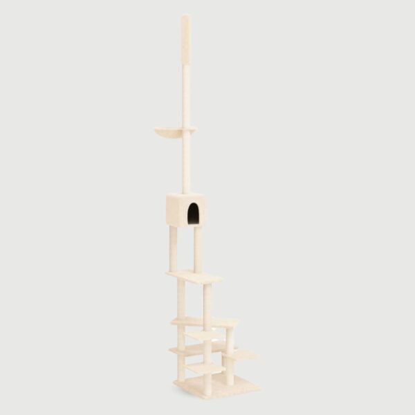 Wieża, którą można przymocować do sufitu i dostosować jej wysokość w zakresie od 268,5 do 294,5 cm? Tak, to możliwe! Dzięki temu Twój kot będzie miał stabilne i bezpieczne miejsce do zabawy, a Ty nie będziesz martwić się o jego bezpieczeństwo.