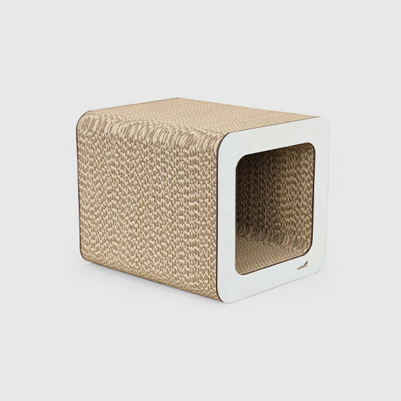 Odkryj wyjątkowy wielofunkcyjny domek dla kota, wykonany z naturalnej tektury falistej i płyty HDF, który nie tylko spełnia funkcjonalne potrzeby Twojego pupila, ale także wprowadza do Twojego wnętrza nowoczesny i stylowy akcent.