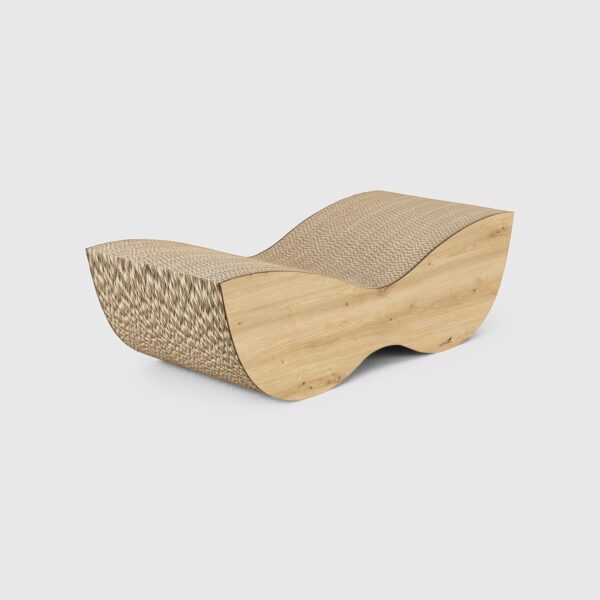 Tekturowy drapak i legowisko dla kota, wykonane z naturalnej tektury falistej i płyty meblowej HDF, gwarantuje niezawodność i solidność, idealnie komponując się z nowoczesnym wystrojem wnętrz.