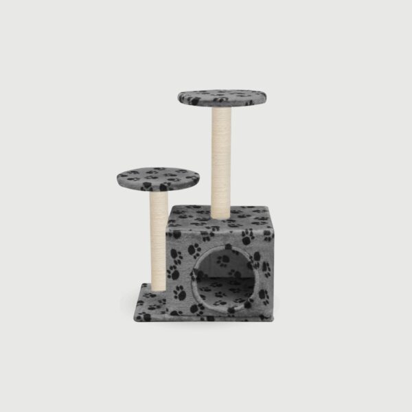 Napisz pierwszą opinię o „Drapak z sizalowymi słupkami i domkiem, 60 cm, szary w kocie łapki”