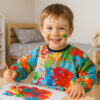 – łatwy do czyszczenia – fartuch wystarczy przetrzeć wilgotną ściereczką lub wrzucić do pralki na pranie w 30°C, to odzież ochronna dla dziecka, która nie chłonie zabrudzeń i szybko schnie – gotowa na kolejne malowanie