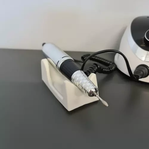 - NAJWYŻSZA JAKOŚĆ – spełnia europejskie normy. Do produkcji użyto wysokiej jakości podzespołów, które gwarantują wieloletnią pracę z produktem. W zestawie poza frezarką znajduje się podstawka umożliwiająca odłożenie głowicy zarówno podczas pracy jak i po zakończonym zabiegu. Jest także uchwyt na głowicę, który można doczepić do frezarki oraz frezy i kapturki.