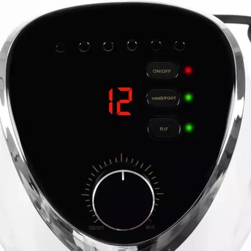 - WYŚWIETLACZ – frezarka posiada duży dwucyfrowy wyświetlacz, który pokazuje aktualne obroty. To świetnie ułatwienie kiedy potrzebujesz szybko zmienić obroty. Wyświetlana wartość to zakres od 1000 do 35000 rpm (1-35).