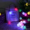 • SPECYFIKACJA-  7 trybów świecenia: stały i przerywane; odległość między punktami świetlnymi: 15 cm; kabel miedziany; panel solarny: 2 V 100 mAh; bateria 1,2 V 400 mAh; wodoodporność: IP44; 10 lampionów; kolor świecenia: ciepły biały; długość kabla z lampkami: 140 cm; średnica kuli: 7 cm; długość całkowita: 350 cm; waga: 0,159 kg; waga w opakowaniu: 0,170 kg.