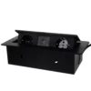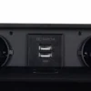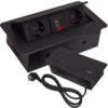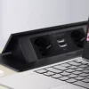 - 2 GNIAZDKA + 2 USB – listwa składa się z 2 gniazd sieciowych z uziemieniem typu schuko + 2 gniazda USB 2.1 w obudowie chowanej w blat. Obudowa wykonana jest z wysokiej jakości aluminium malowanego proszkowo. Dodatkowe porty USB umożliwiają np. ładowanie telefonu bezpośrednio z gniazda.
