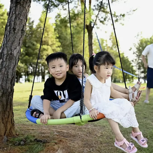 montaż w dowolnym miejscu – możesz zawiesić ją na drzewie, stelażu, suficie lub placu zabaw, dodatkowo masz 2 sposoby montażu: na 2 hakach (bujanie przód-tył) lub 1 haku (obrót 360°)