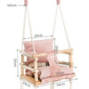 - SPECYFIKACJA – producent: Iso Trade; marka Kruzzel; kolor: różowy; materiał: Cleanaboo® + drewno sosnowe; wiek: od 12 miesiąca; maksymalne obciążenie: 25 kg; liny: fi 10 mm; wymiary huśtawki: 34 x 34 x 26 cm; waga: 2,7 kg; waga w opakowaniu: 2,9 kg.