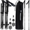 - SPECYFIKACJA – kolor: czarny; materiał: stop aluminium, EVA + poliester, stal wolframowa, poliester, PP; przeznaczone dla osób o wzroście 154 – 196 cm; rodzaj: składane; 3 rodzaje końcówek: na asfalt, błoto, śnieg; możliwość regulacji: tak; tasiemki na nadgarstki: tak; regulowana długość kijków: 110 – 130 cm; waga: 0,632 kg; waga zestawu: 0,736 kg.