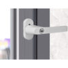 - SPECYFIKACJA – kolor: biały; materiał: tworzywo sztuczne + metal; wymiary zewnętrzne klamki: 13 x 2 cm; waga: 250 g; waga w opakowaniu: 260 g.