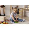• KOLOROWE ELEMENTY – edukacyjne klocki są bardzo kolorowe, dzięki czemu mocno oddziałują na dziecięcą wyobraźnię. W ten sposób zabawka wspiera rozwój kreatywności dziecka oraz udoskonalane jest logiczne myślenie.