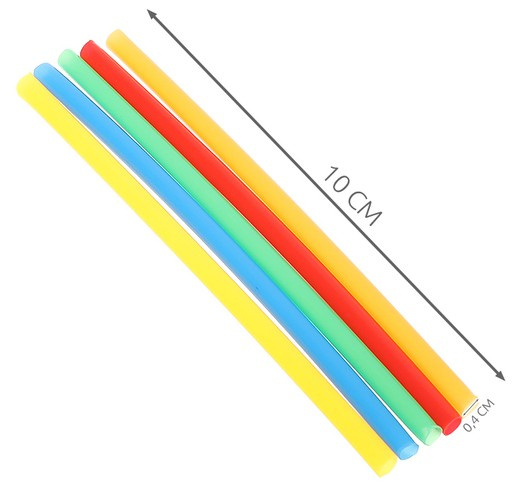 ? SPECYFIKACJA – kolory: czerwony, pomarańczowy, niebieski, zielony, żółty; wymiary rurek: 0,4 x 10cm; waga z opakowaniem: 160 g.