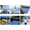 • PEŁNA STABILIZACJA PODCZAS WIATRU – największą zaletą tego koca, są dodatkowe zaczepy na rogach i kotwy, które z łatwością można wbić w podłoże na którym chcemy rozłożyć matę. Dodatkowo możesz zasypać kieszenie piaskiem i w ten sposób ustabilizować matę na plaży.