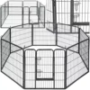 Wielowariantowy kojec składa się z 8 paneli, jeden z nich to bramka. Wyznaczenie określonego terenu w pomieszczeniach bądź na zewnątrz pomaga w opiece i zagwarantowaniu bezpieczeństwa. Klatka to przyrząd, który nie tylko łatwo ustawić i wykorzystać od razu po zamontowaniu. To także zagroda składająca się z 8 paneli, które można w dowolny sposób konfigurować. Jest przeznaczony do stosowania zarówno wewnątrz jak i na zewnątrz, jest odporny na wysoką, a także niską temperaturę i wszystkie inne zmiany atmosferyczne. Kojec jest bezpieczny i stabilny. Wszystkie części są dokładnie zaokrąglone, co zdecydowanie minimalizuje zagrożenie powstania urazów nawet w przypadku bezpośredniego, dynamicznego kontaktu. Gwarantuje uzyskanie zamkniętego obszaru o powierzchni aż do 2,56 mkw. Jest zatem doskonałym rozwiązaniem w przypadku trzymania w nim zwierząt domowych, takich jak psy czy króliki. Kojec wielowariantowy wyposażony został w ruchomą bramkę z podwójnym zabezpieczeniem przed otwarciem. W zestawie znajdują się wszystkie elementy niezbędne do przygotowania kojca do użytkowania. Montaż jest prosty i nie wymaga zbyt wiele czasu oraz specjalnych umiejętności. Po złożeniu zajmuje niewiele miejsca – wystarczy wyjąć pręty.