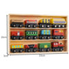 - SPECYFIKACJA – materiał: drewno, pozostałe: żelazo + PE + magnes; 3 lokomotywy; 9 wagonów; w zestawie organizer / półka; wymiary całego zestawu z organizerem: 33 x 20 x 3 cm; waga kolejki 0,662 kg; waga w opakowaniu: 0,974 kg.