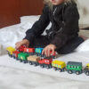 - WIELE ELEMENTÓW – w zestawie znajduje się wiele elementów – tworzą go 3 lokomotywy oraz 9 wagonów w różnych kolorach, dlatego kolejka z drewna będzie doskonałą zabawką, która nie znudzi się przez długi czas.