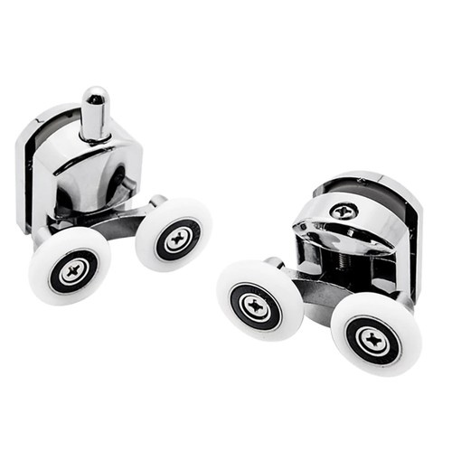 - UNIWERSALNE – rolki zostały wykonane z chromu, tworzywa sztucznego, nylonu oraz stali odpornej na korozję. Pasują do wszystkich kabin prysznicowych w których zastosowano tego typu łożyska kulkowe. Rolki wraz z kółkami dzięki uchylnej konstrukcji dopasowują się do kształtu prowadnicy. Pasują do kabin zarówno kwadratowych jak i półokrągłych.