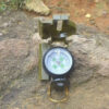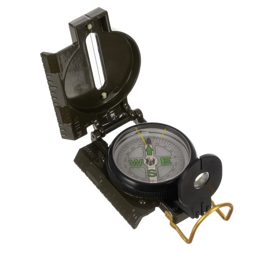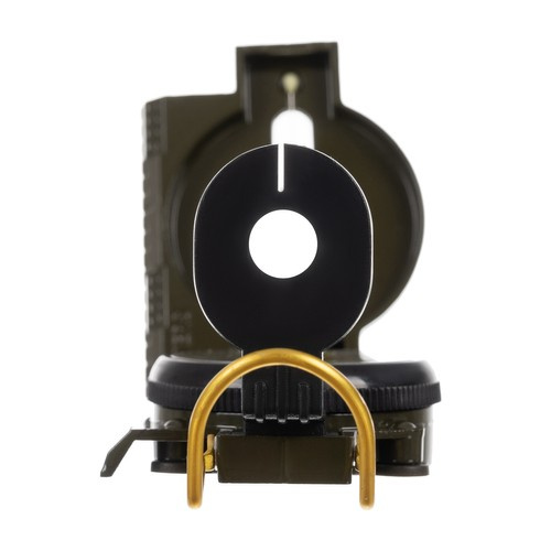 - DODATKOWE PRZYRZĄDY CELOWNICZE – kompas posiada szczerbinkę i cienką żyłkę pełniącą funkcje muszki. Pod szczerbinką znajduje się mała lupa ułatwiająca odczytywanie dokładnego kąta z tarczy kompasu. Obudowa busoli składa się także z wieczka, w którym wykonany jest podłużny otwór, przez jego środek przebiega napięta, cienka żyłka.Wewnątrz kompasu znajduję się celownik.