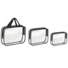 Z zestawem naszych kosmetyczek zapinanych na zamek błyskawiczny z łatwością posegregujesz wszystkie przybory toaletowe czy akcesoria do makijażu i zorganizujesz swój bagaż. Każda kosmetyczka ma inne wymiary, dzięki czemu ich przeznaczenie możesz dopasować do swoich potrzeb i lepiej wykorzystać miejsce w walizce. Pomieści wszystkie akcesoria toaletowe niezbędne w czasie wyjazdów. Całkowicie przeźroczysty materiał zapewnia wgląd do zawartości kosmetyczki bez konieczności jej otwierania, co sprawdza się szczególnie na lotniskach. Dodatkowo kosmetyczki są wodoodporne, dzięki czemu masz pewność, że ich zawartość nie wydostanie się na pozostały bagaż. Największa kosmetyczka ma wygodne paski do noszenia jak torebka. Sprawdzą się w czasie wakacyjnych wyjazdów, krótkich wycieczek, wyjść na siłownię, basen czy trening, a także do przechowywania w domu.