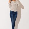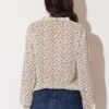 Elegancka szyfonowa koszula damska z długim rękawem. Dekolt wykończony wiązaniem. Koszula o luźnym kroju, zapinana na guziki. Koszula wykonana z delikatnego prześwitującego materiału w ptaszki.