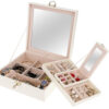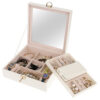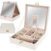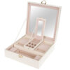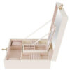 - LUSTERKO – wewnątrz kuferka znajduje się uchylne lusterko. Doskonale sprawdzi się do zakładania biżuterii, a także do wykonania makijażu. Pod lusterkiem znajduje się schowek, który umożliwi przechowywanie najcenniejszej biżuterii.